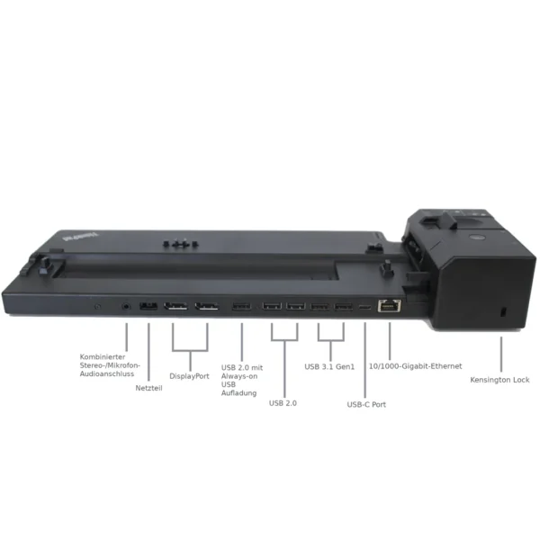 Schluss mit dem ständigen Umstecken von Kabeln! Die Lenovo ThinkPad Pro Docking Station (Typ 40AH) ist die ideale Lösung für professionelle Arbeitsplätze im Büro oder Home-Office. Diese mechanische Side-Dockingstation wurde speziell für ThinkPad-Modelle der Generationen 2018 bis 2020/21 entwickelt und bietet eine stabile, kabelfreie Verbindung zu Ihrer gesamten Peripherie.